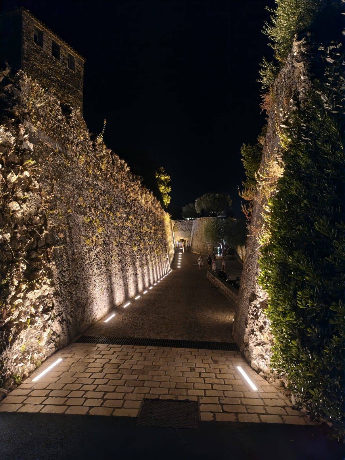 Grâce à une mise en lumière homogène et dynamique, les remparts de Saint-Paul-de-Vence se dévoilent avec élégance, durables et protégés contre les intempéries.
